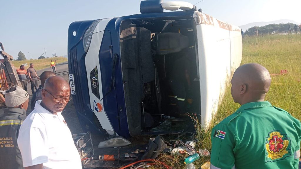 Ngokusho kukamphathiswa leli bhasi belithwele abalandeli e-Inkatha Freedom Party (IFP) futhi kusolakala ukuthi umshayeli ubegijima.