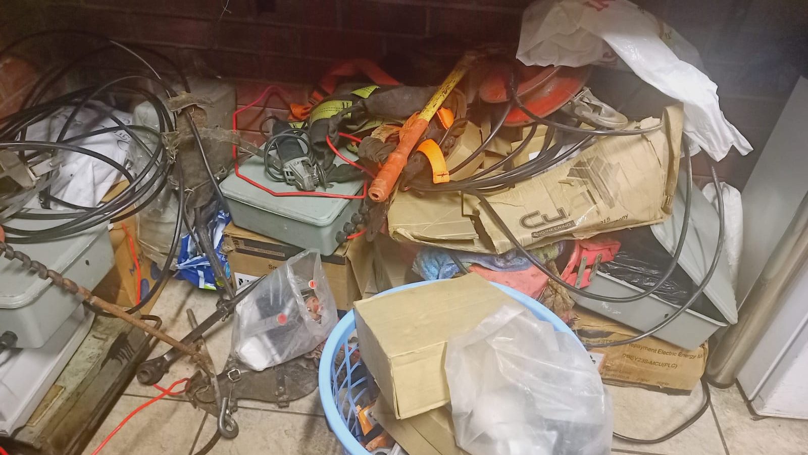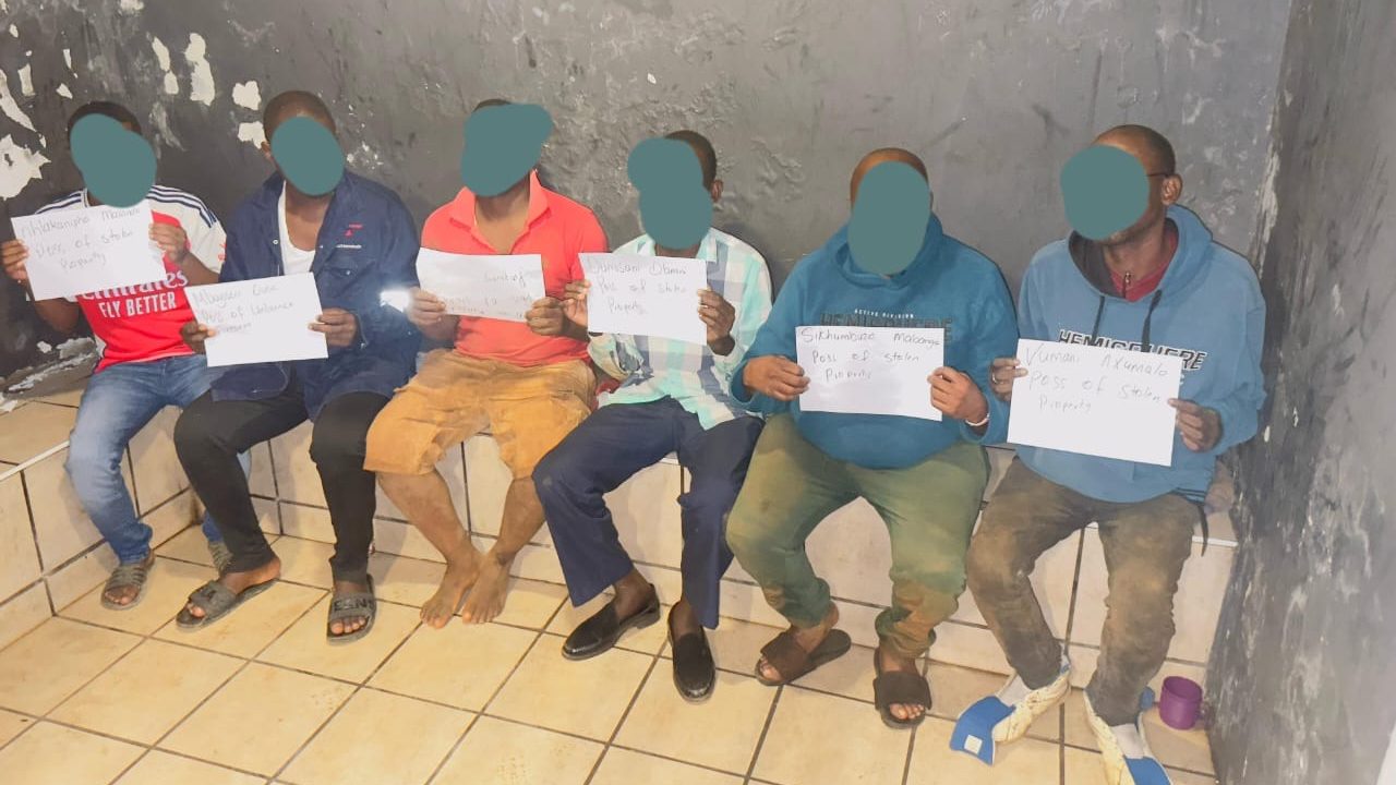 Amaphoyisa omkhankaso -Operation Vala Umgodi abophe abasolwa abahlanu abaneminyaka ephakathi kwengu-32 no-54, abatholwe nempahla ka-Eskom eMpangeni naseMtunzini ngeSonto.